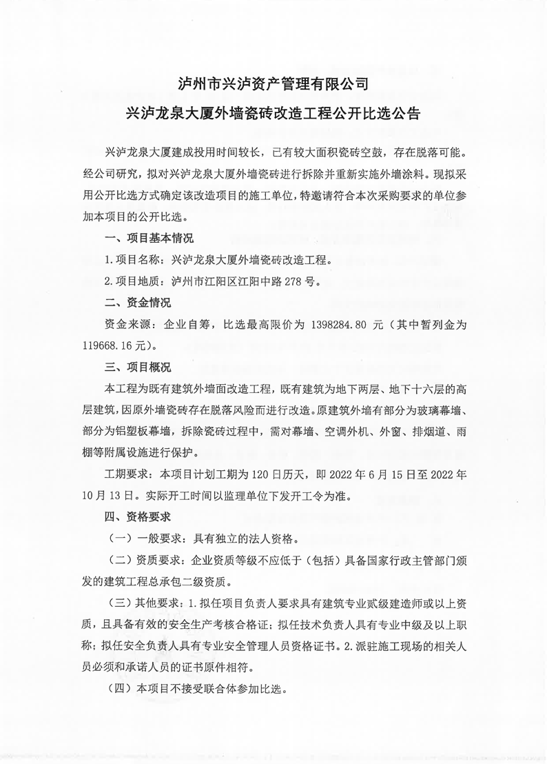 興瀘龍泉大廈外墻瓷磚改造工程公開比選公告
