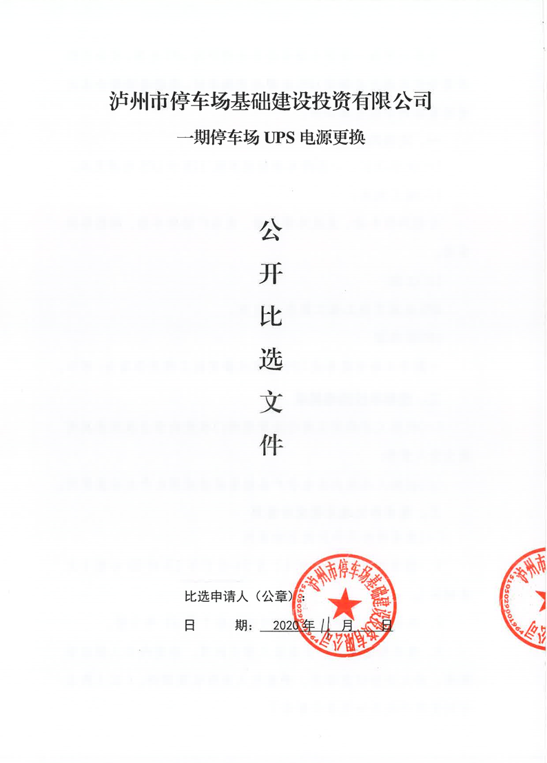 瀘州市停車場基礎(chǔ)建設(shè)投資有限公司一期停車場UPS電源更換公開比選文件