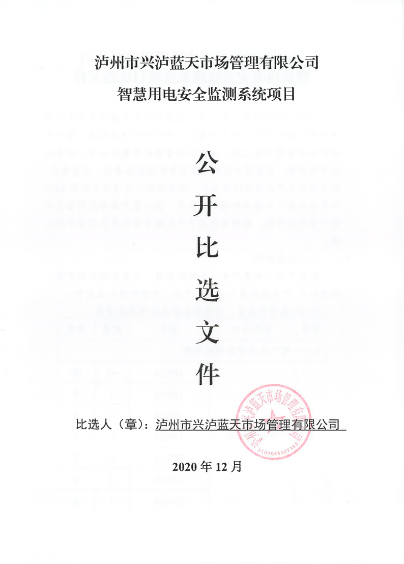 瀘州市興瀘藍(lán)天市場管理有限公司智慧用電安全檢測系統(tǒng)項目公開比選文件