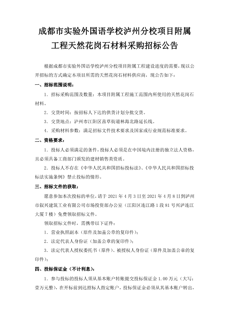 成都市實驗外國語學校瀘州分校項目附屬工程天然花崗石材料采購招標公告