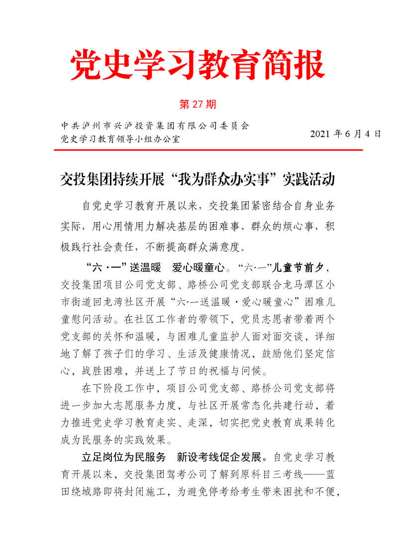 黨史學(xué)習(xí)教育簡報-第27期